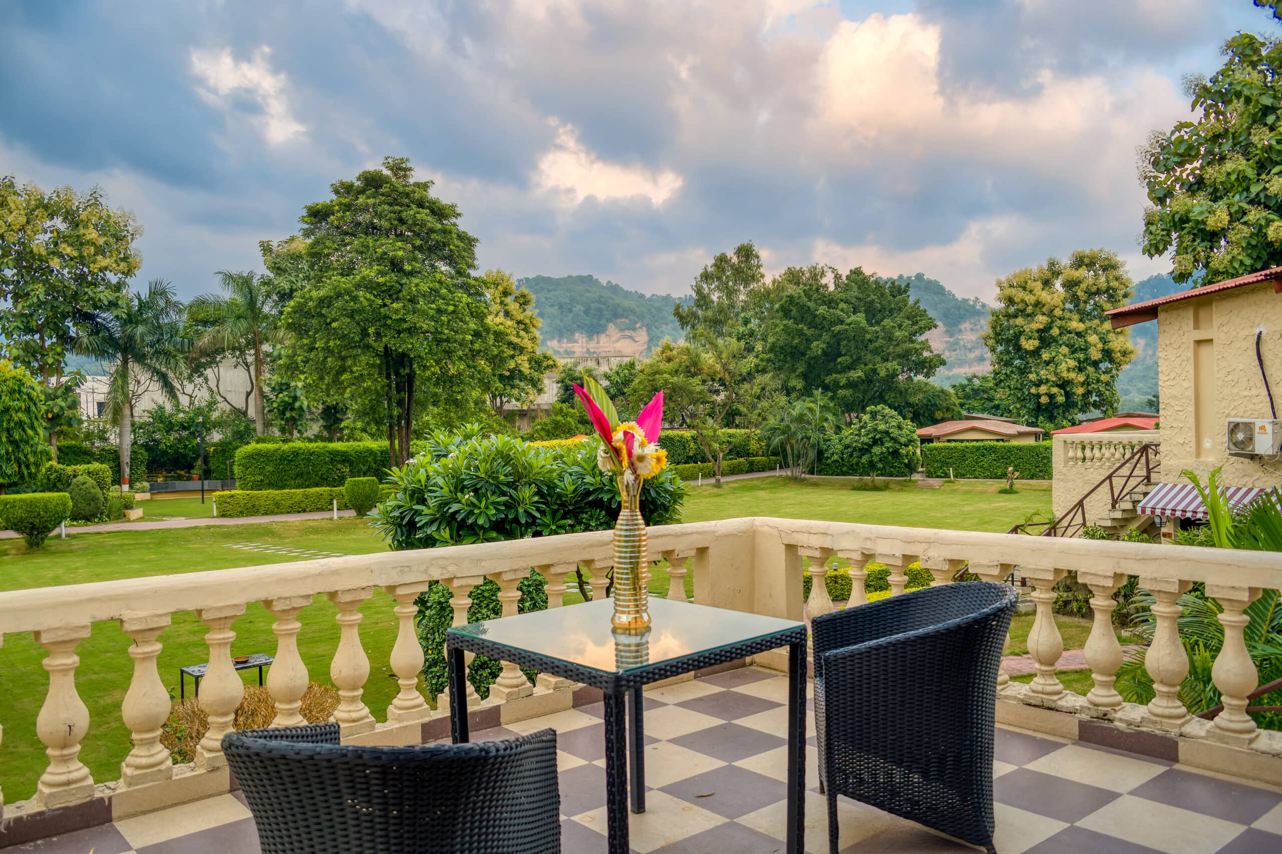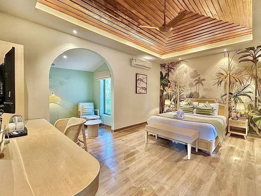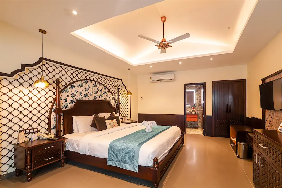 Tucked away between the two main entry gates of Jim Corbett National Park - Bijrani and Dhikala - Manu Maharani Resort & Spa stands as an exquisite sanctuary for travelers seeking a luxurious retreat in Ramnagar. The charming Kosi River meanders gracefully alongside the property, while the majestic Shivalik Range looms in the background, creating a breathtaking panorama that embodies the spirit of wilderness. Conveniently accessible from major cities such as Delhi, Jaipur, and Rishikesh, the resort is strategically positioned near all the iconic tourist hotspots within Corbett. Guests can indulge in opulent comfort while immersing themselves in the stunning natural beauty surrounding the resort.